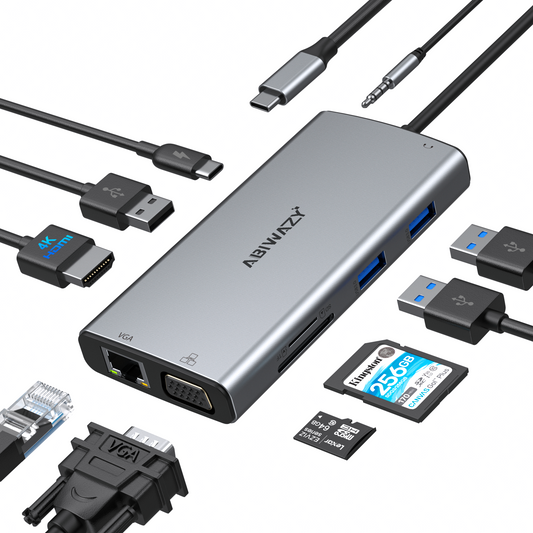 ABIWAZY USB C Docking Station Dual Monitor for HP Dell Lenovo Thinkpad Surface, 8 in 1 Computer Multiple Monitor Hub Adapter to Dual 4K HDMI, DisplayPort, VGA, 100W PD, 3 USB 2.0 for Windows Laptops