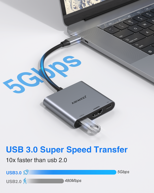 USB C to HDMI Multiport Adapter with 4K HDMI Output,Type-C Hub Converter to 4K HDMI USB 3.0 PD Charging Port,USB-C Digital AV Multiport Adapter for MacBook Pro/air,iPad Pro &More USB-C Devices
